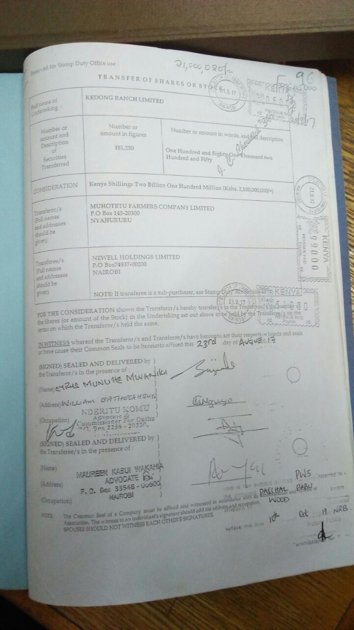 Some directors of the ranch have colluded with some cartel to sell the shares worth 8 Billion for a mere Kshs. 2.1 Billion.