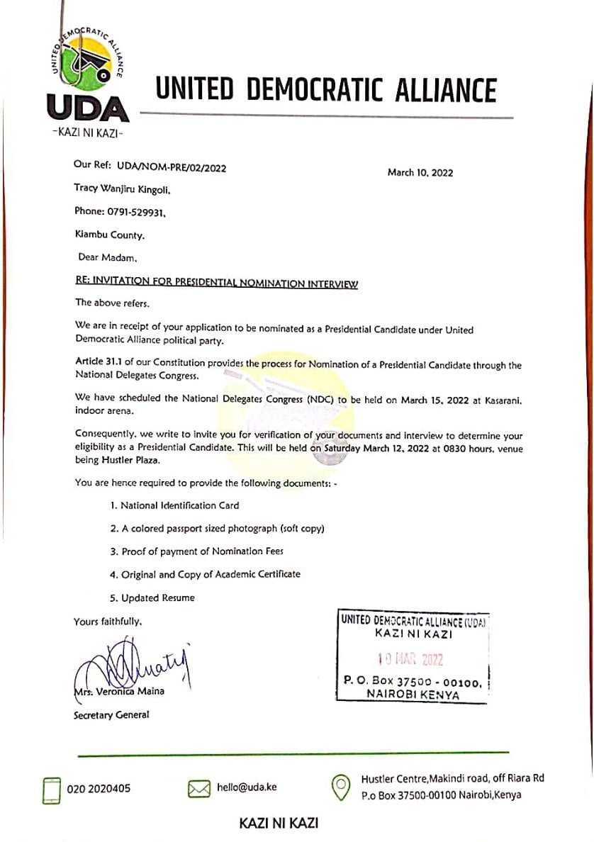 Surprisingly, UDA also invited city socialite Tracy Wanjiru Kingoli who apparently wants to succeed President Uhuru Kenyatta.