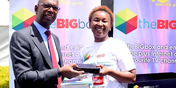 CAPTION: Bob Collymore and Sylvia Mulinge, while launching the Big Box units. They later malfunctioned, occasioned by reckless greed by Safaricom’s tender committee’s.