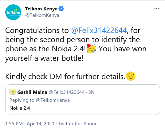 Shortly after, the company sent out another tweet, this time congratulating Mr Maina for being among those who got it right.