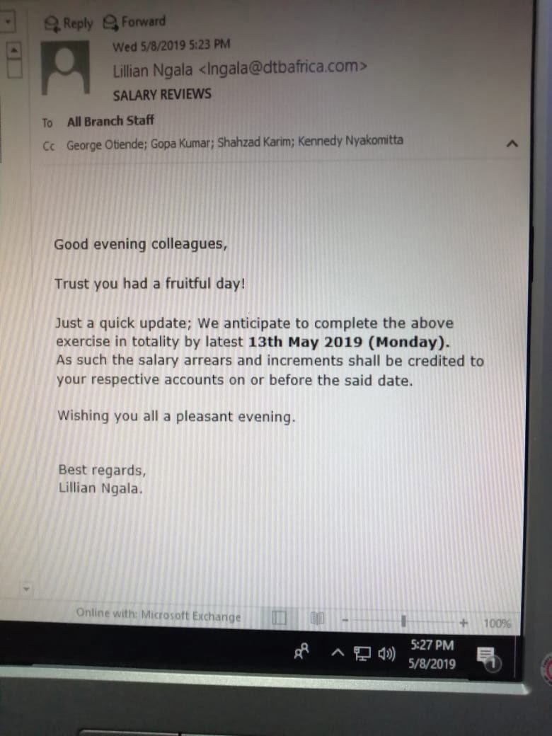 The terrorism-linked Diamond Trust Bank has decided to review its staff salaries after a series of embarrassing exposes from the chief editor of this site, senior Blogger Cyprian Nyakundi.