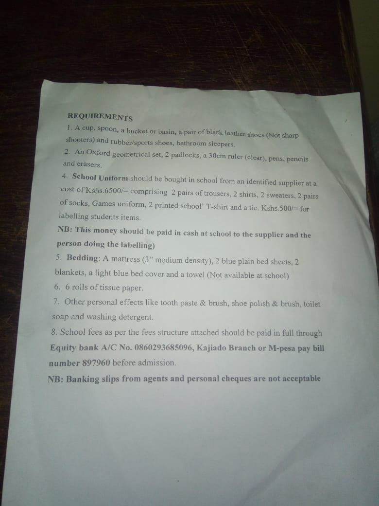 They were told to buy new sets of uniforms, new bedding, pay full school fees and other things like one is joining form one.