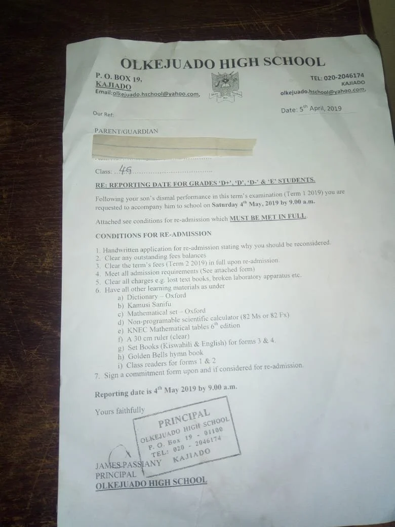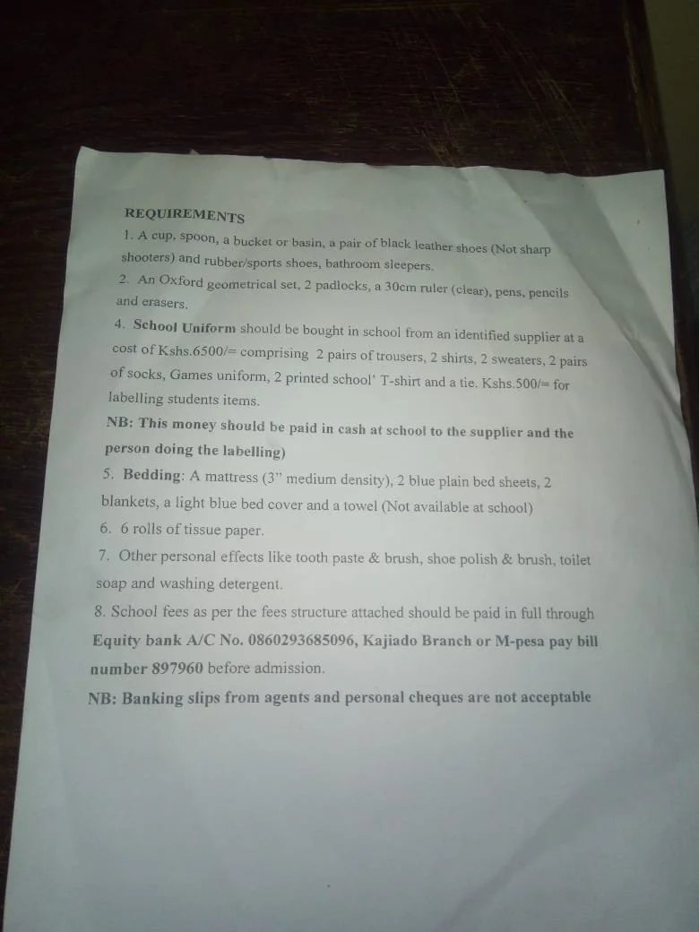 They were told to buy new sets of uniforms, new bedding, pay full school fees and other things like one is joining form one.