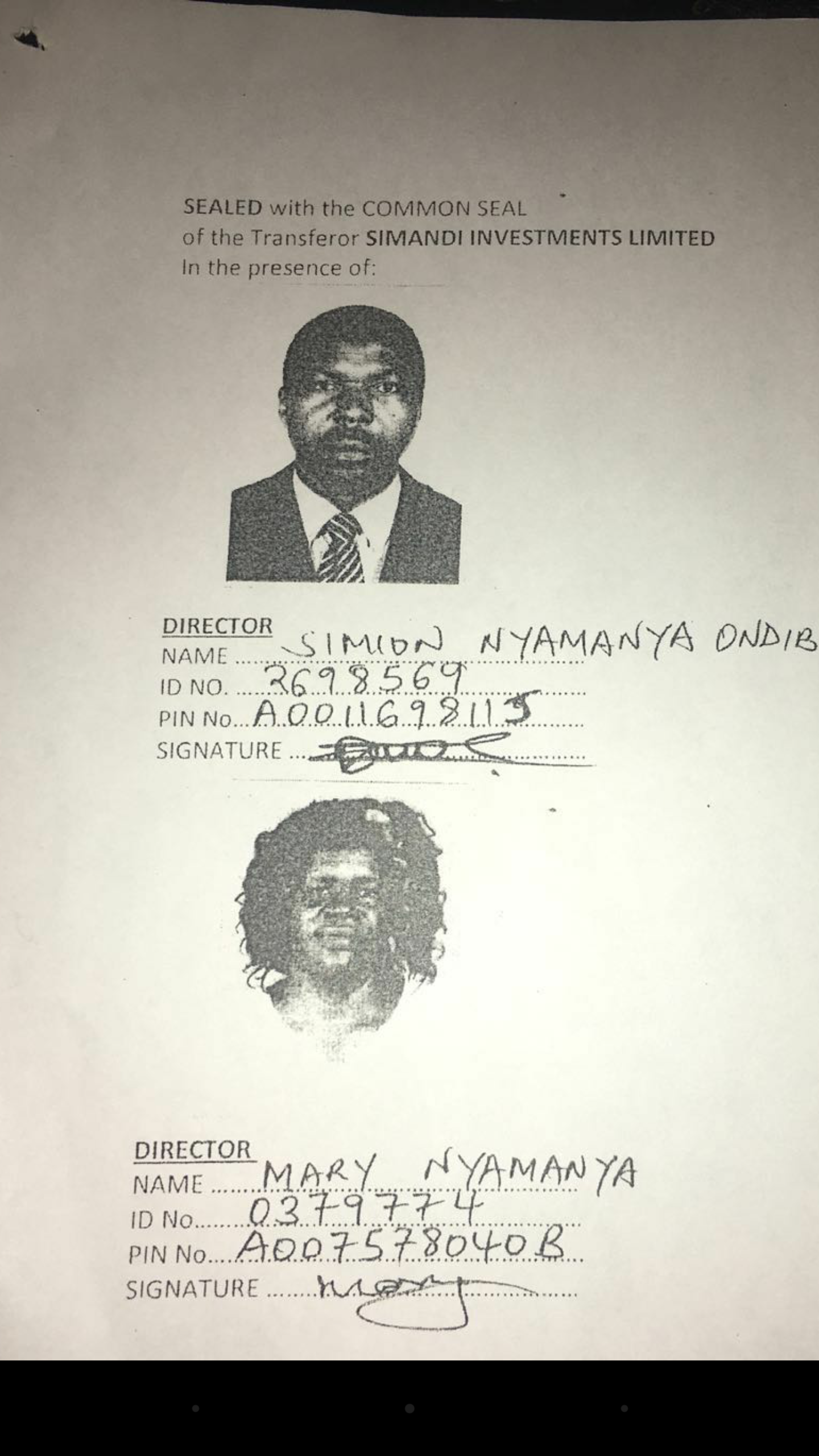 CAPTION: Records at the lands ministry reveal the identities of agents of Muhammad Swazuri who are said to be husband and wife Simon Namanya Ondiba and Mary Namanya. The two reside in Kahawa West.Over the last few months, Swazuri has dispatched his two proxies to pursue the plot of land, and written a letter to the OCPD of Embakasi to make sure that they are accorded security in their bid to grab the parcel of land along Mombasa Road, next to Power Technics.