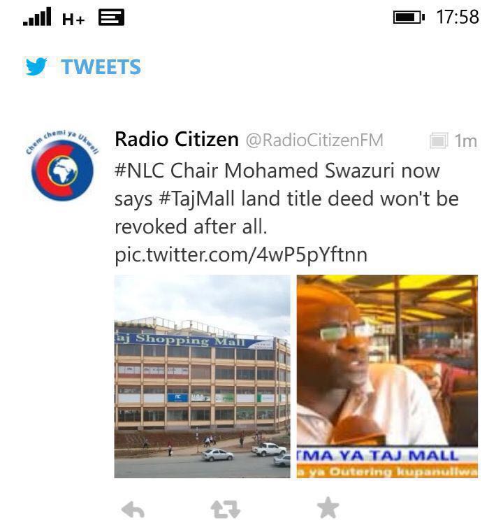 Swazuri has been strangely very keen on the Taj Mall case, where he has been shifting goal-posts at every turn, probably seeking different ways of extorting the owners of the building.