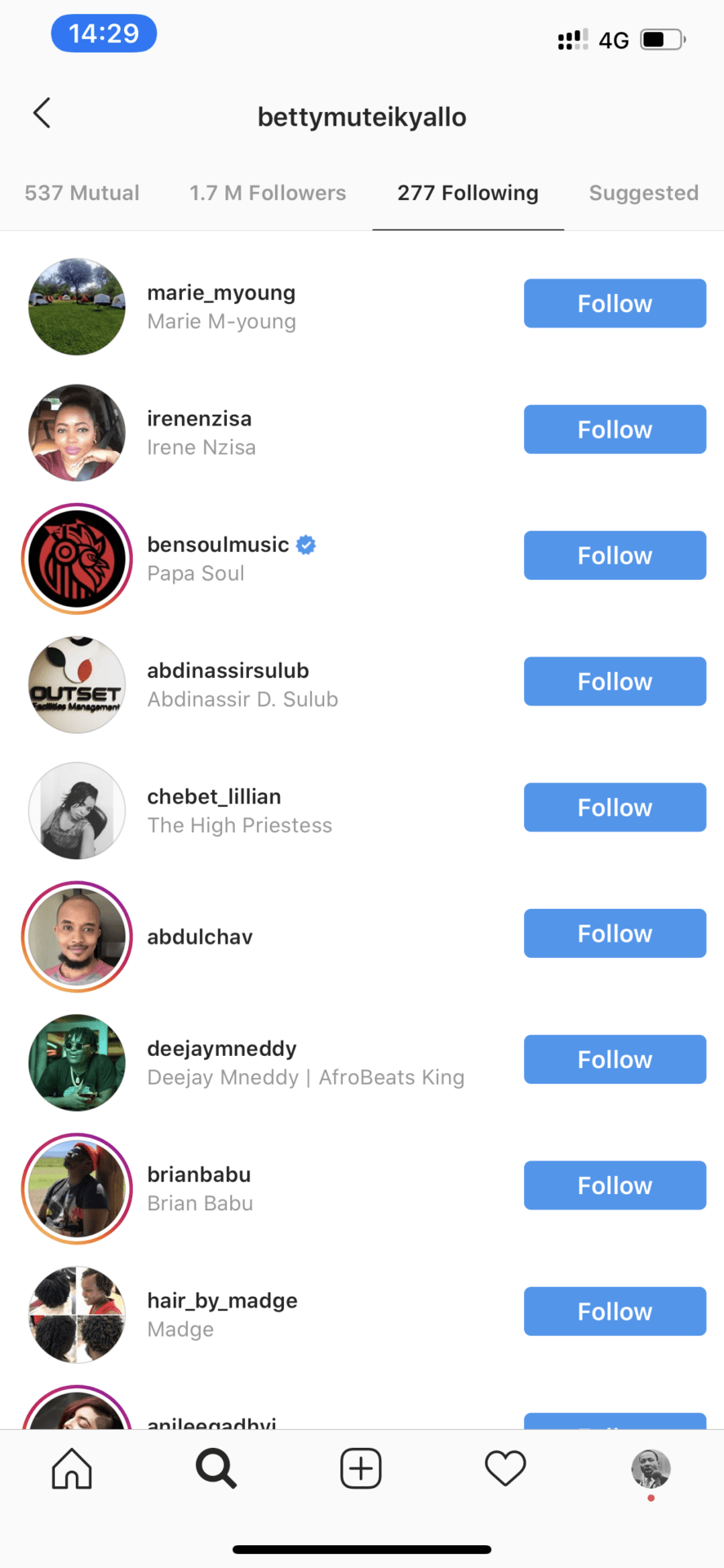 We did a basic background search by first looking at the people Betty Kyalo follows if we could see Abdinasir and our guess was right, we found him.