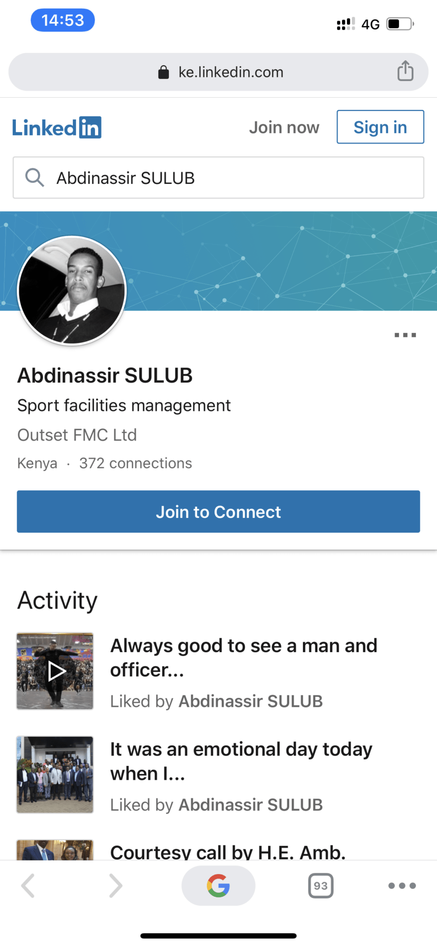 Interestingly people like Anto Neosoul know Abdinasir who also says he is the CEO of Outset Facilities management limited.