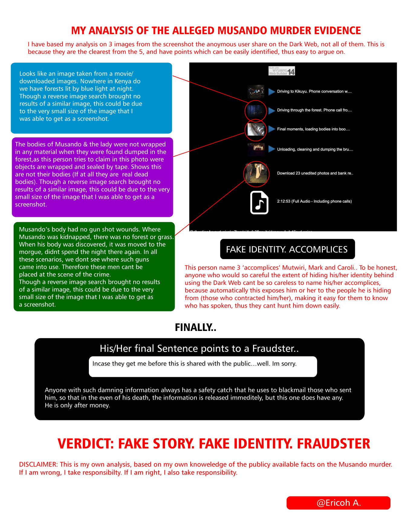 According to an anonymous poster on the dark-web, he had all the images, videos and audios that would expose those that assassinated Chris Msando and was selling them at Ksh. 3 Million, something this site warned would probably be a scam, as has now been ascertained.