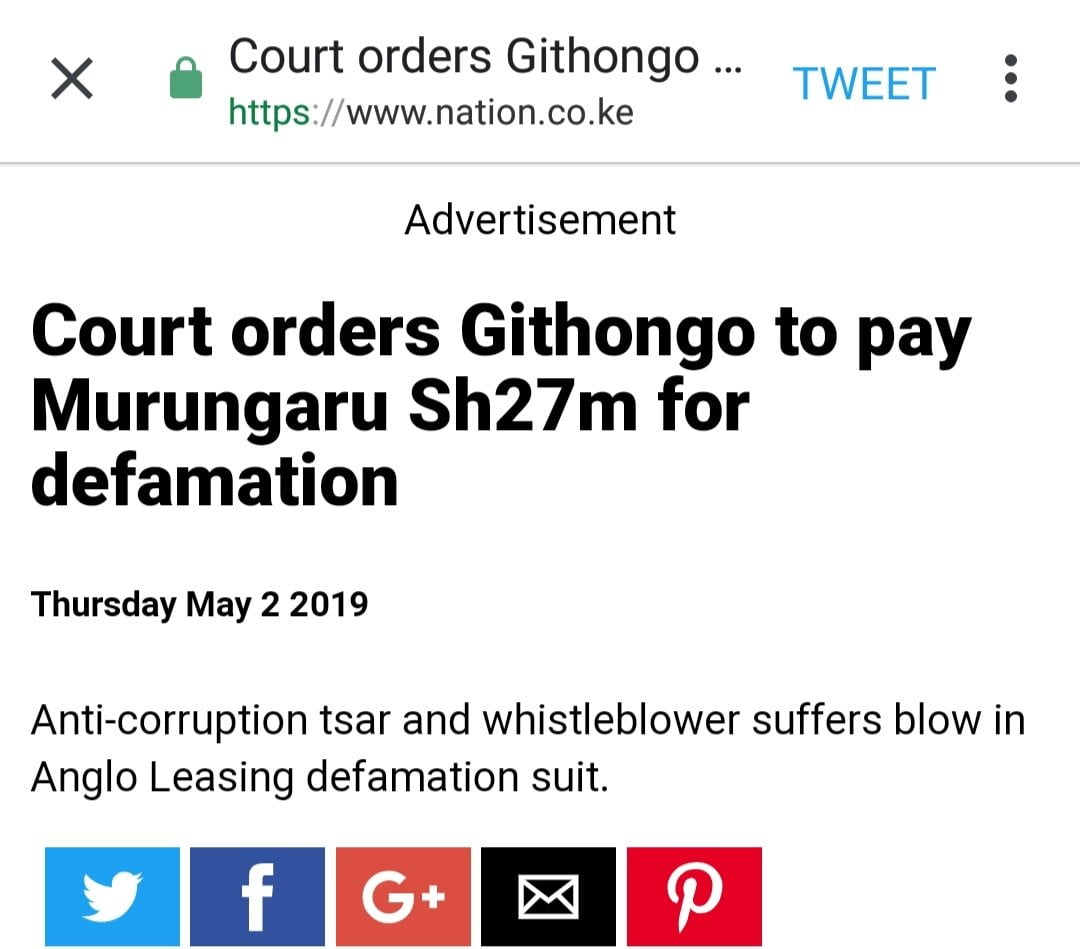 The day the former anti-corruption czar John Githongo was ordered to pay to former minister for Internal Security Chris Murungaru Kshs. 27 million for defamation; third-rated political analyst Mutahi Ngunyi celebrated.