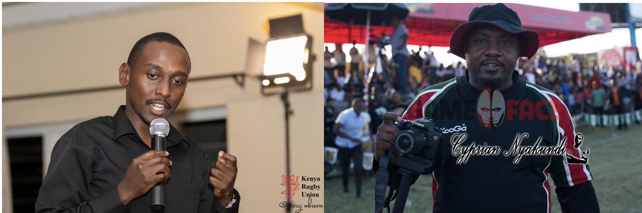 From left: Influential bloggers and rugby fanatics Poghie Ndonga & Arigi Obiero from Odd-shaped balls & Ministry of Rugby respectively; Why would they jeopardize the prospects of the entire game by leading an anti-establishment and false narrative? Whose interests do they front?