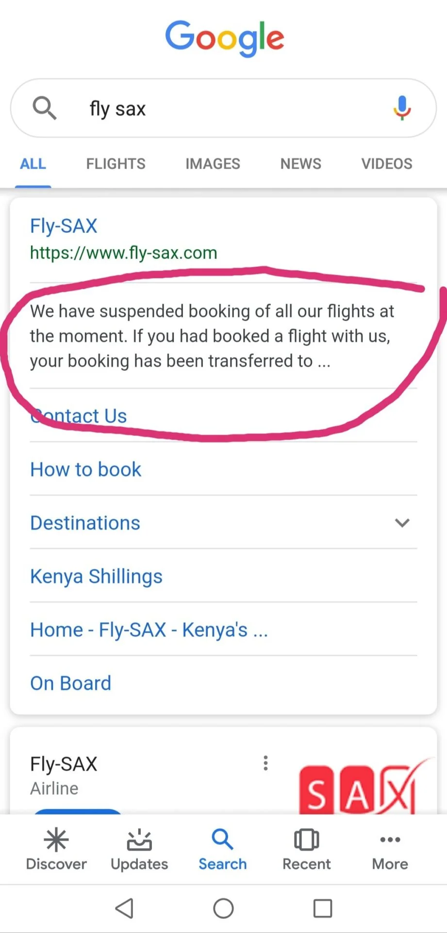 Note that fly-sax changed name to east african. com without prior notice to both employees and customers
