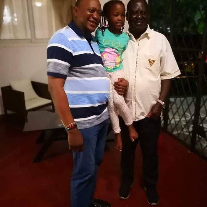 Last evening, Uhuru Kenyatta, his brother Muhoho and his sister Nyokabi visited Raila Odinga's Nyali residence just hours before his 74th birthday. What was supposed to be a private meeting went public after a photo of Uhuru Kenyatta and Raila Odinga posing for pictures surfaced online. The enigma of Kenyan politics