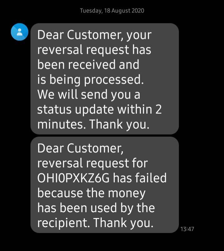 A reversal attempt of the money sent to the scammers failed.