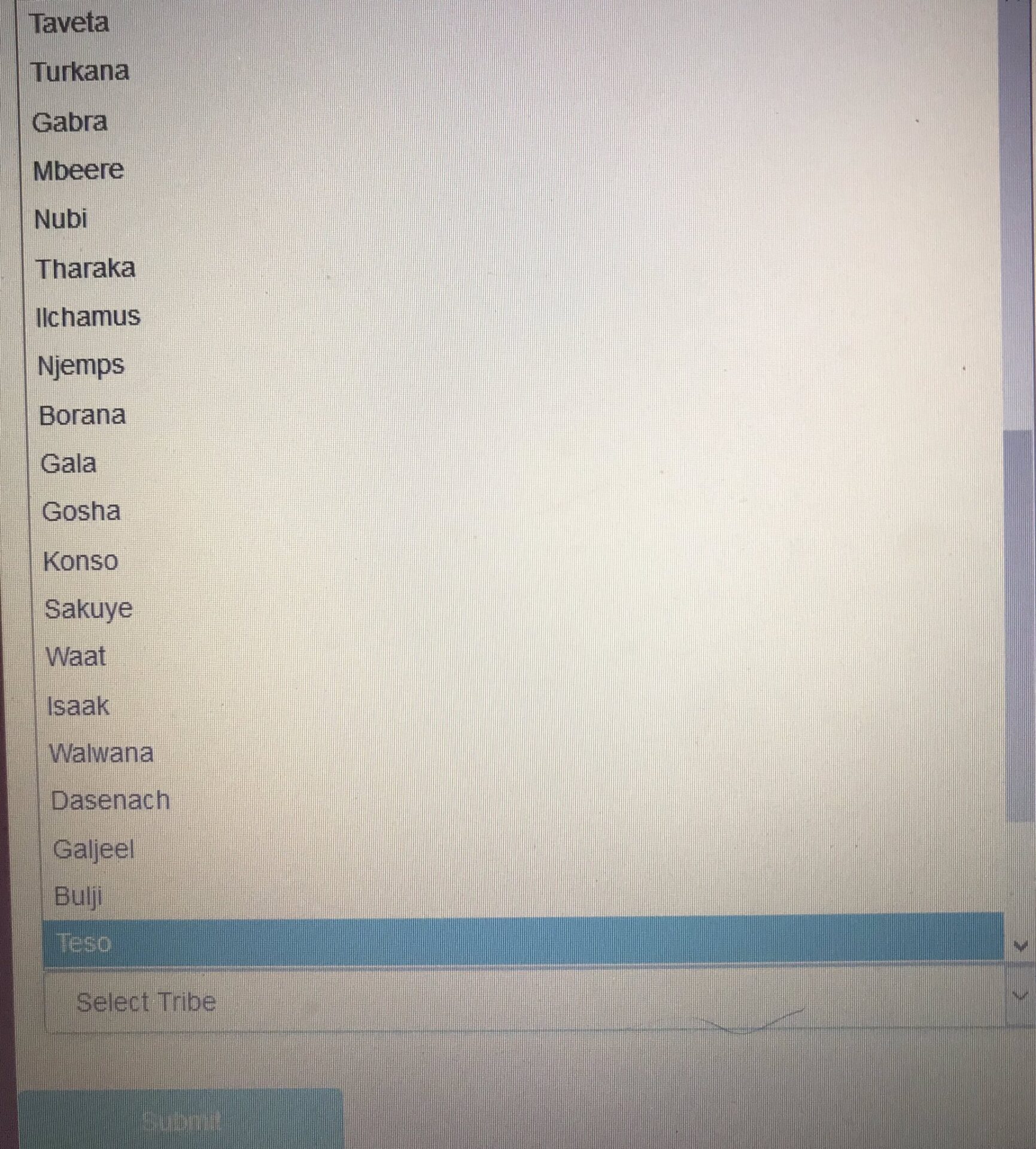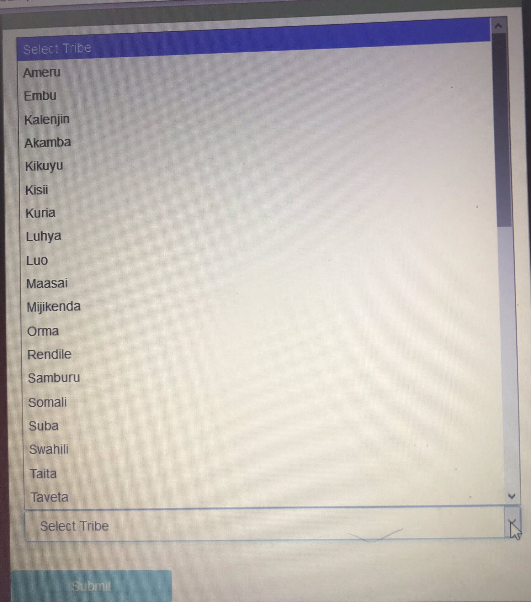 Some of the tribes available to choose from included the regular ones as well as special entries like Kenyan Arab, Kenyan Asian, Kenyan European, and Kenyan American.