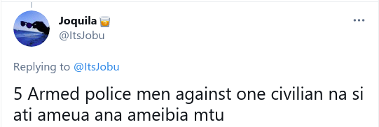 “5 Armed police men against one civilian na si ati ameua ana ameibia mtu,” he added in another follow-up post.