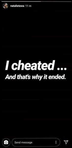 Natalie then quickly came to her own defense and heavily refuted the claims that she cheated, adding that she wasn’t the one who made the post admitting to have cheated.