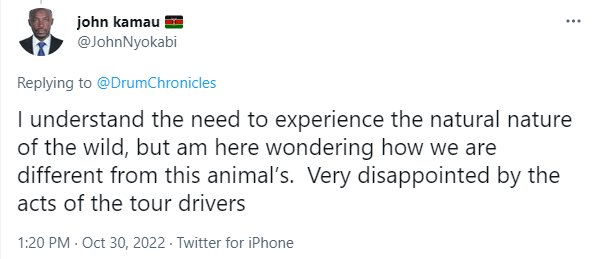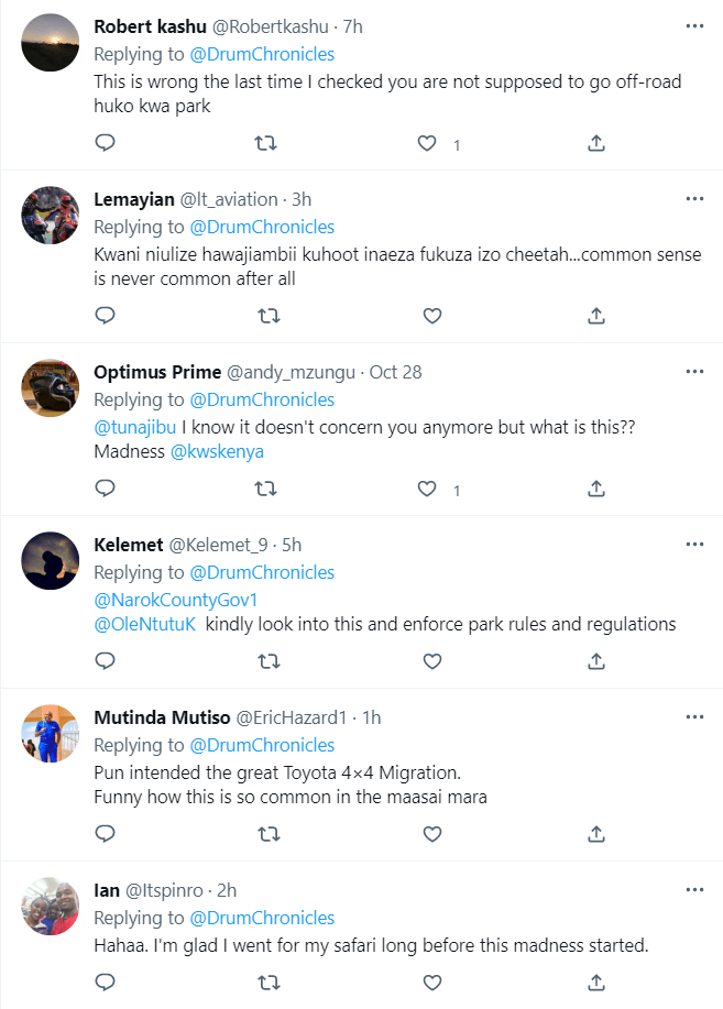 “I understand the need to experience the natural nature of the wild, but am here wondering how we differ from these animals. Very disappointed by the acts of the tour drivers,” noted another.