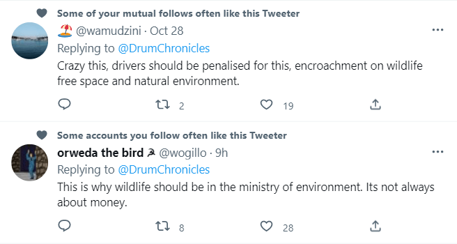 “This is why wildlife should be in the ministry of the environment. It not always about money,” one Kenyan said.