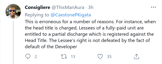 And when the head title is charged, Lessees of a fully-paid unit are entitled to a partial discharge which is registered against the Head Title.