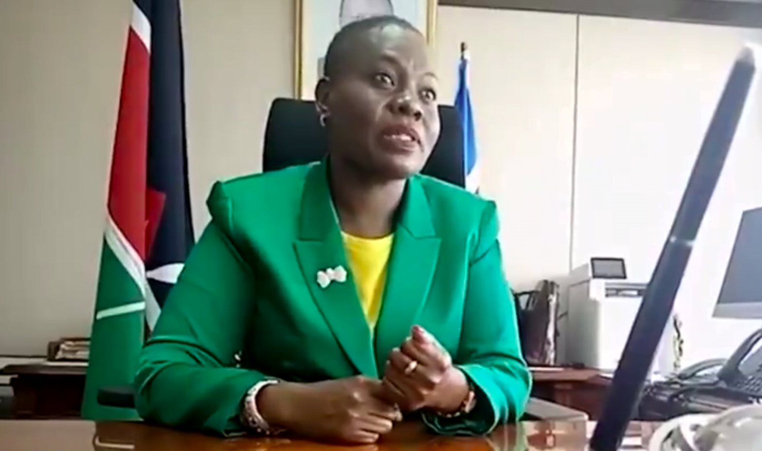 In a viral video clip now doing rounds on social media, Karoney exposed her obvious lack of expertise or experience in the field of Lands when she almost spoke in tongues while attempting to explain how leases and sectional titles work.