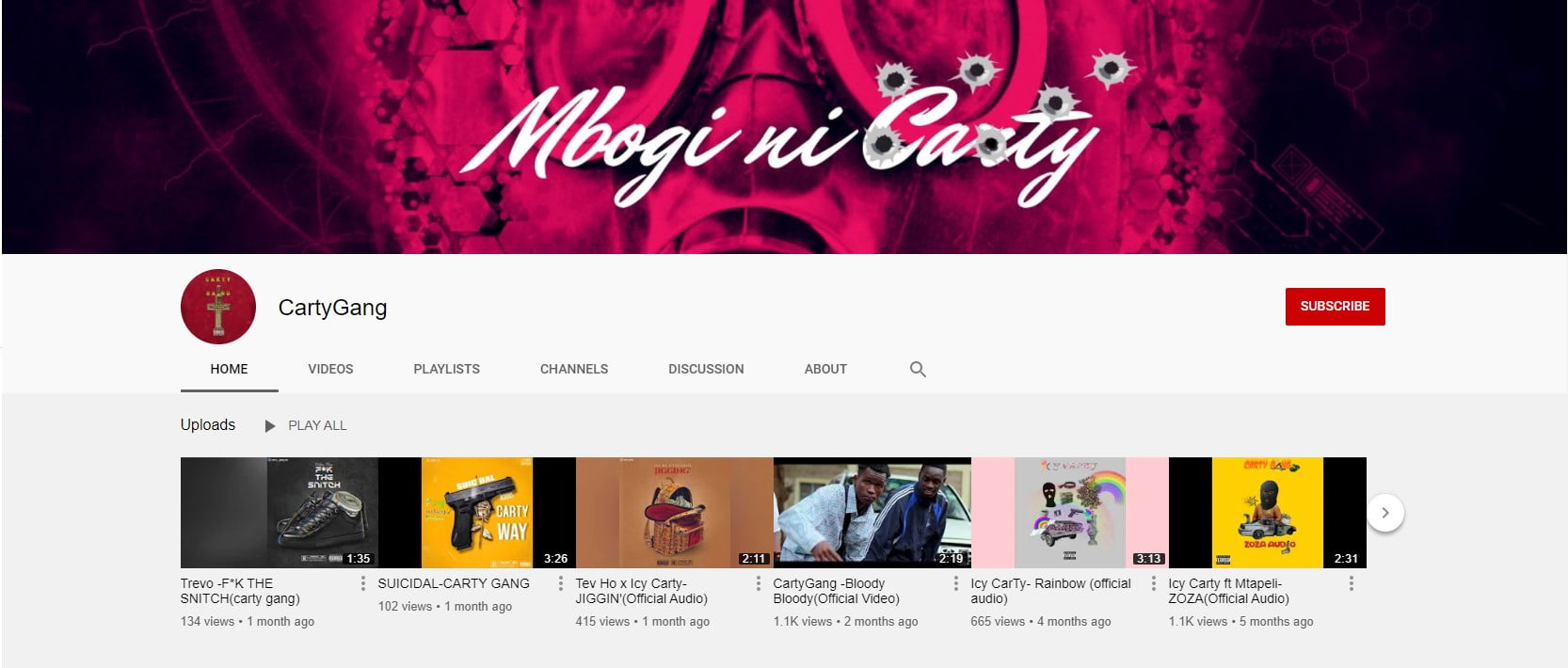 As at now, information on who exactly Carty-gang-ent are is rather scanty but a quick search into the internet portrays the alleged gang as some sort of an upcoming underground musical group based in Nairobi.