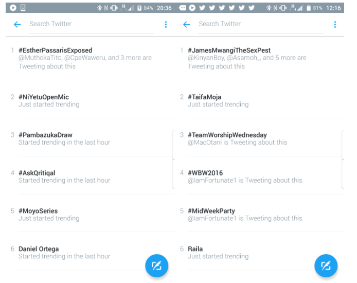 CAPTION: Twitter Trends show how Woke-Twitter had managed to trend James Mwangi as a sex-pest, until Broke Twitter came in to sanitise him as an angel sent to Kenya by heavenly forces. Contrary to public perception and pontification, social-media is what runs this country, seeing the way James Mwangi reacted to a mosqu